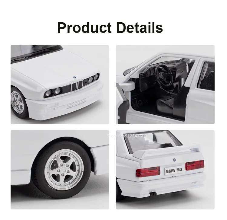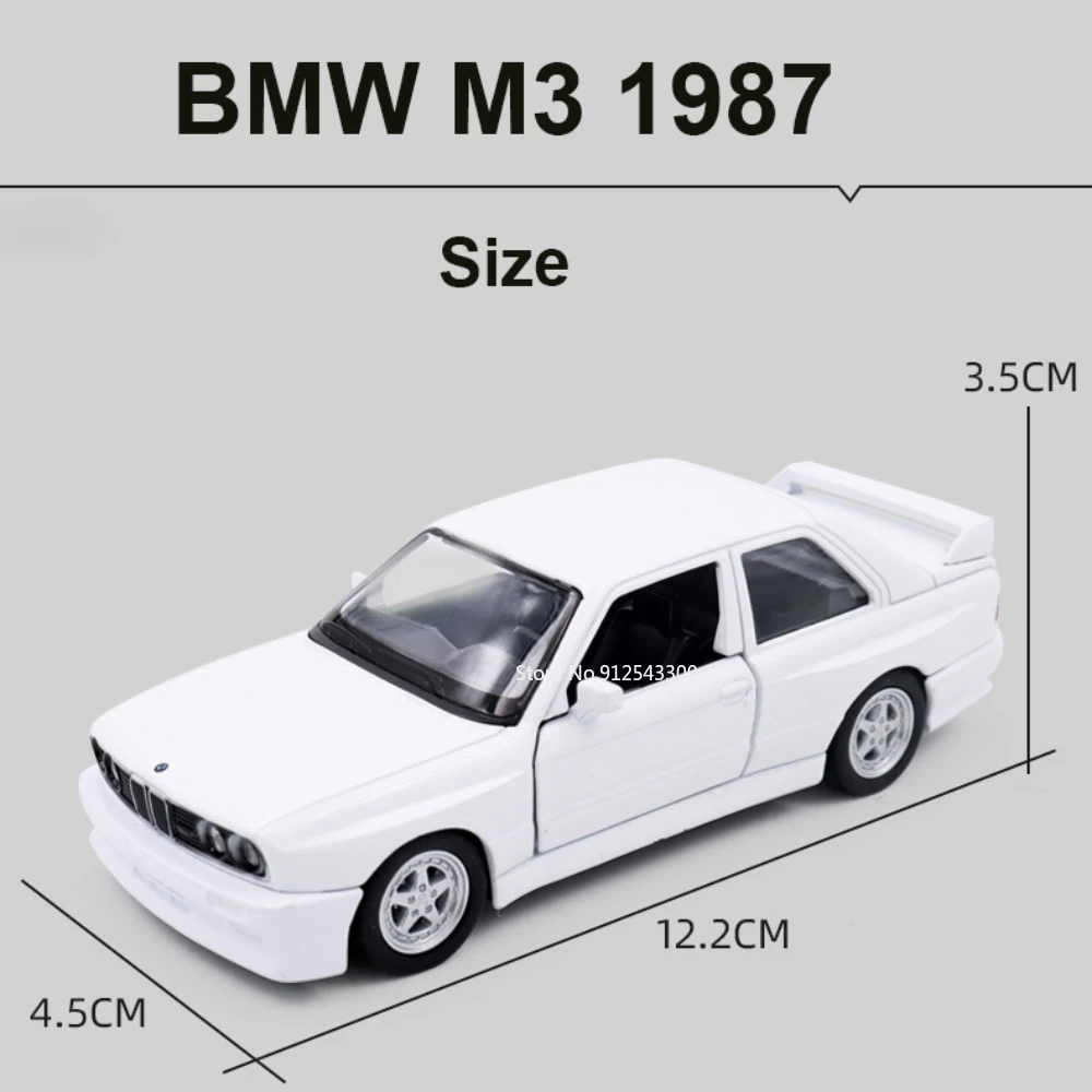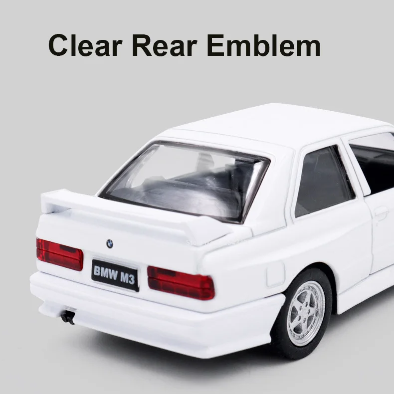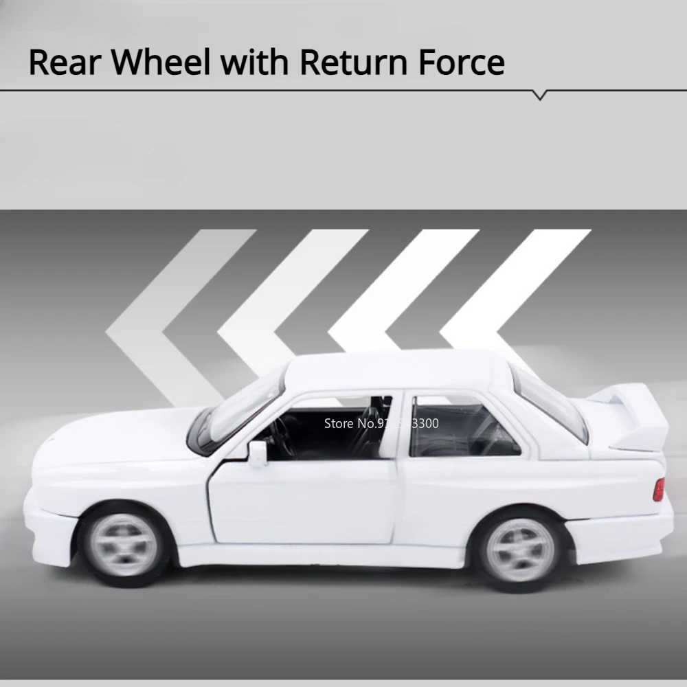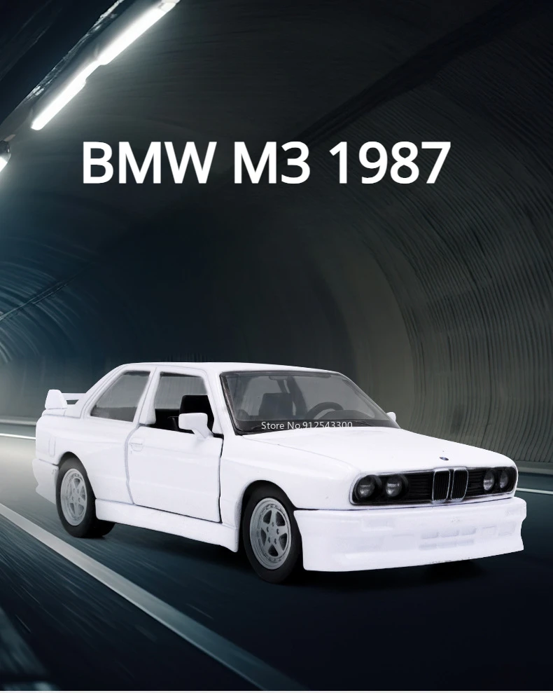 Este modelo do lendário BMW M3 de 1987 , em escala 1:36 , é feito em liga metálica (diecast) e possui portas que se abrem e mecanismo pull-back (puxar e soltar).
