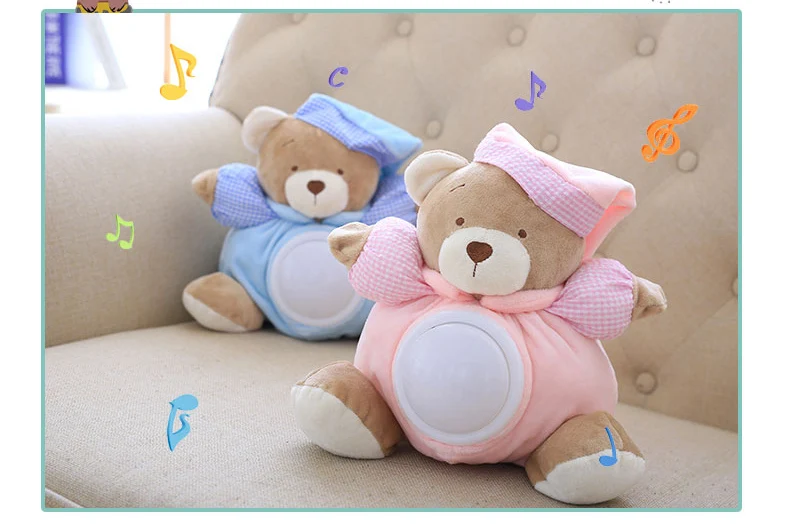 Super macio e fofinho, ele toca mĂșsica suave e iluminada com cores delicadas, ajudando as crianças a relaxar e dormir com mais conforto.